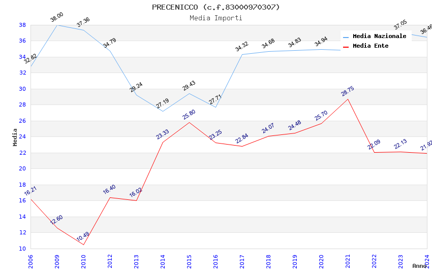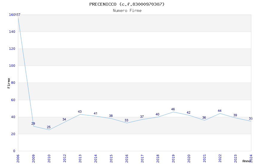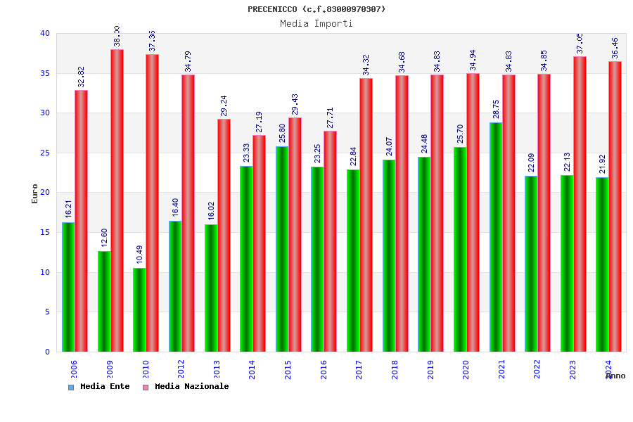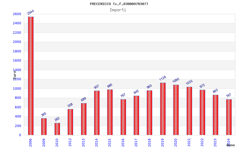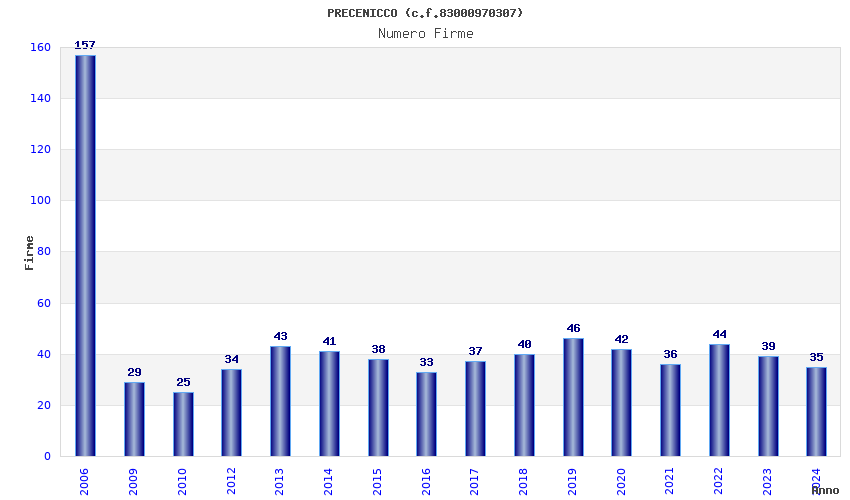 | Anno | Firme | Importi | Media | Naz. | Reg. | Prov. | Comu. |