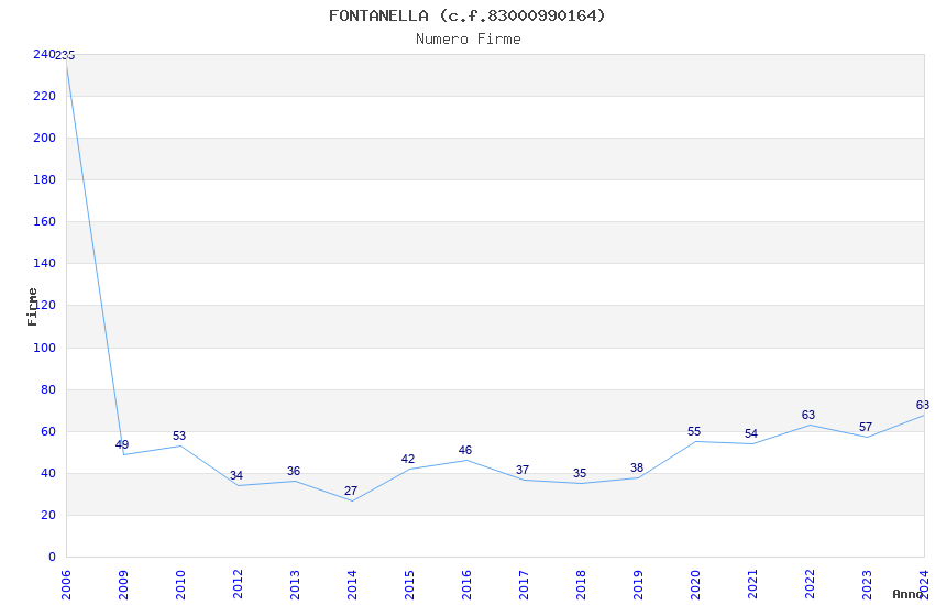 | Anno | Firme | Importi | Media | Naz. | Reg. | Prov. | Comu. |