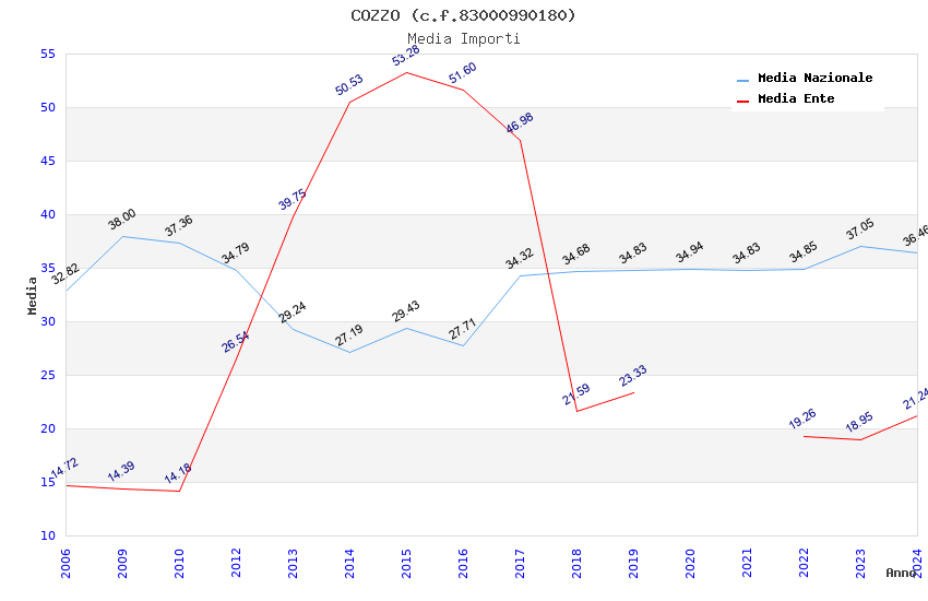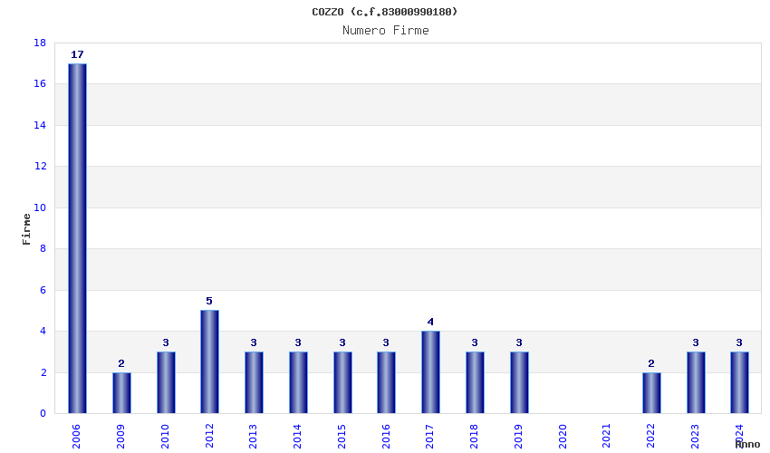 | Anno | Firme | Importi | Media | Naz. | Reg. | Prov. | Comu. |