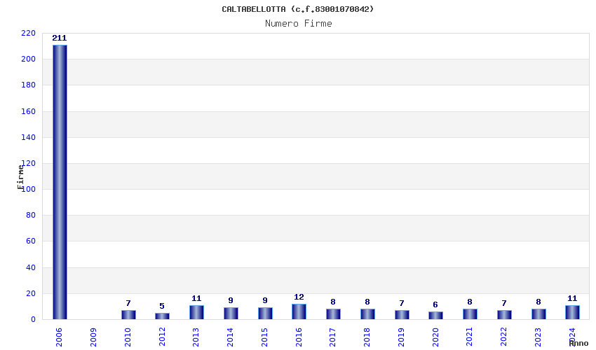 | Anno | Firme | Importi | Media | Naz. | Reg. | Prov. | Comu. |