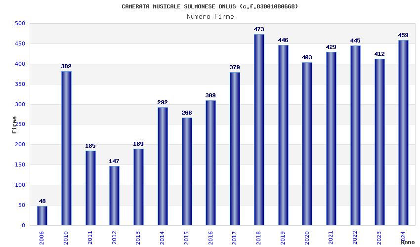 | Anno | Firme | Importi | Media | Naz. | Reg. | Prov. | Comu. |