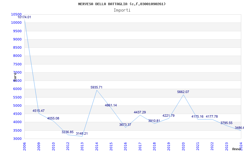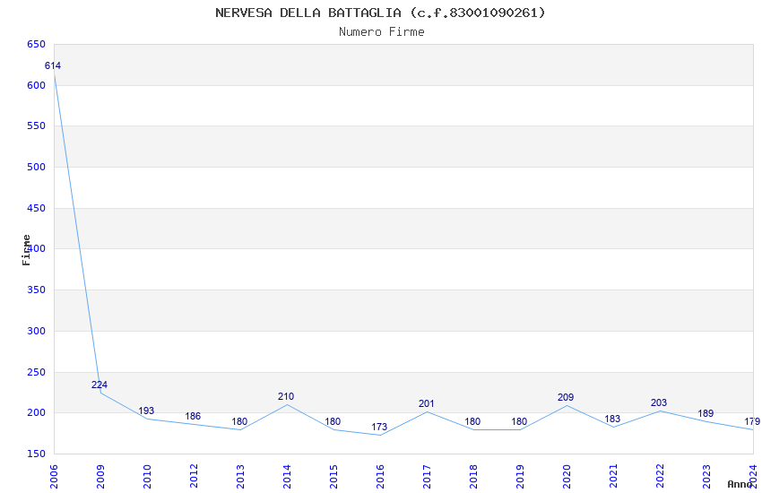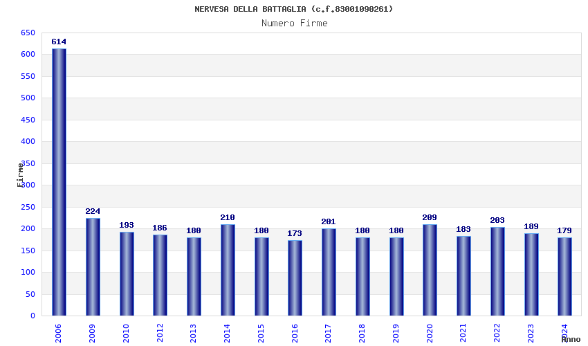 | Anno | Firme | Importi | Media | Naz. | Reg. | Prov. | Comu. |