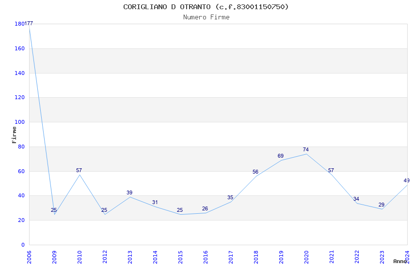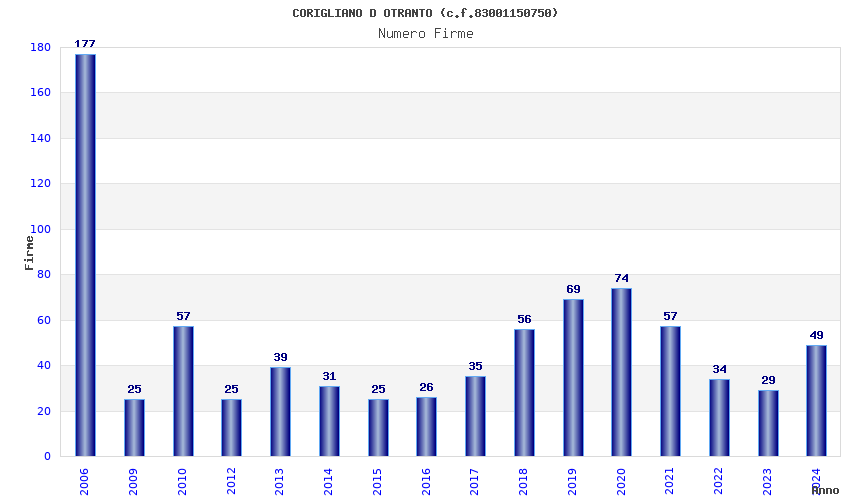 | Anno | Firme | Importi | Media | Naz. | Reg. | Prov. | Comu. |