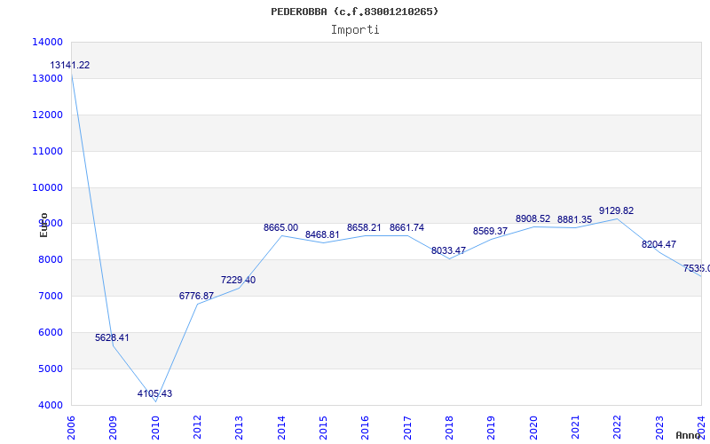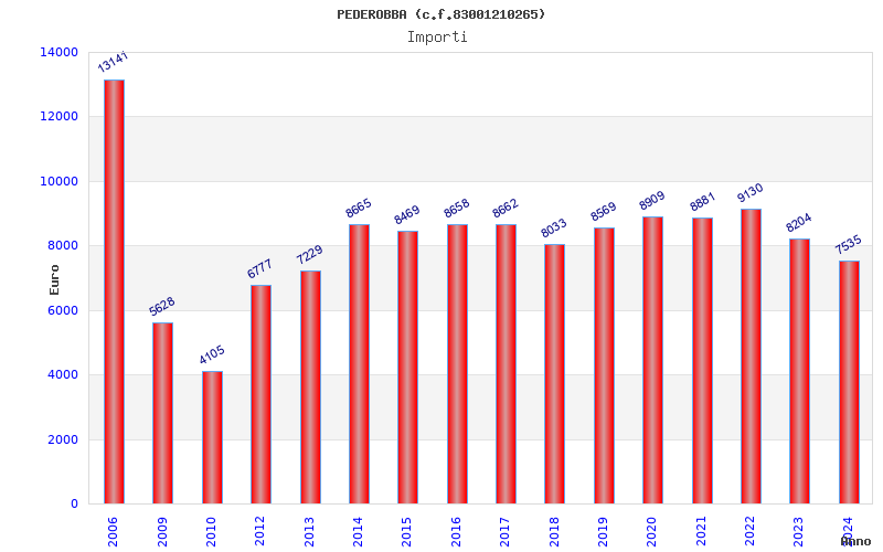 | totale | 6.624 | 130.597,09 | 19,72 |