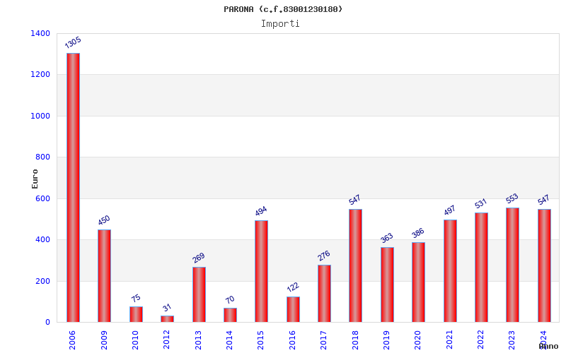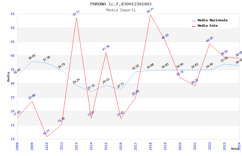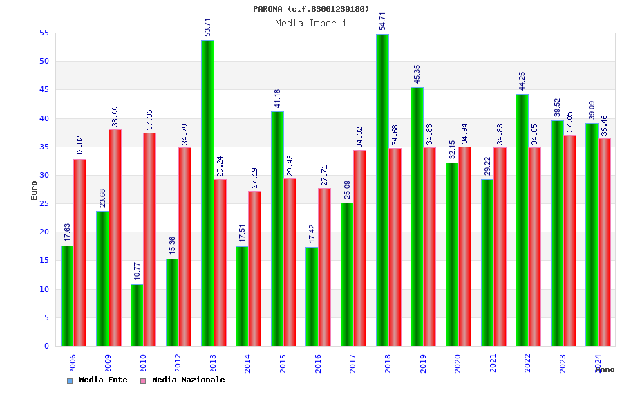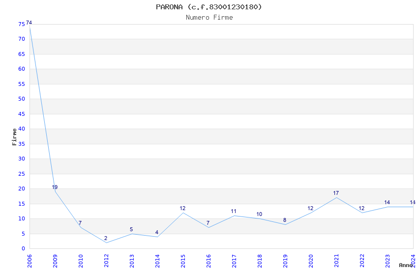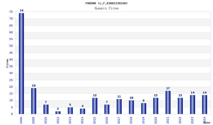 | Anno | Firme | Importi | Media | Naz. | Reg. | Prov. | Comu. |