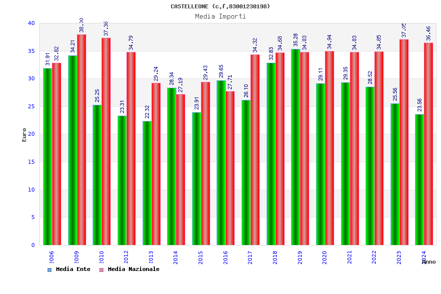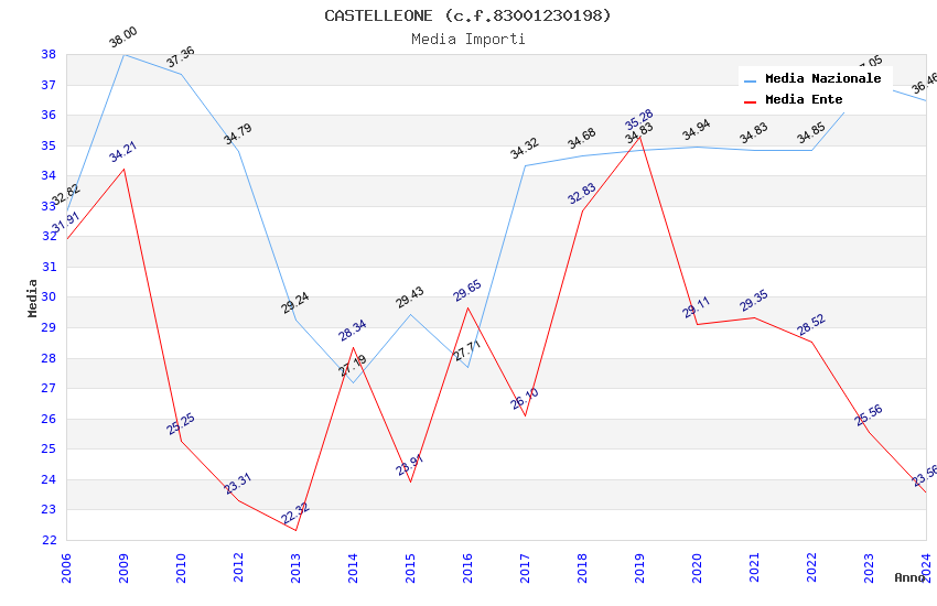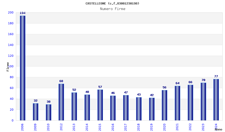 | Anno | Firme | Importi | Media | Naz. | Reg. | Prov. | Comu. |