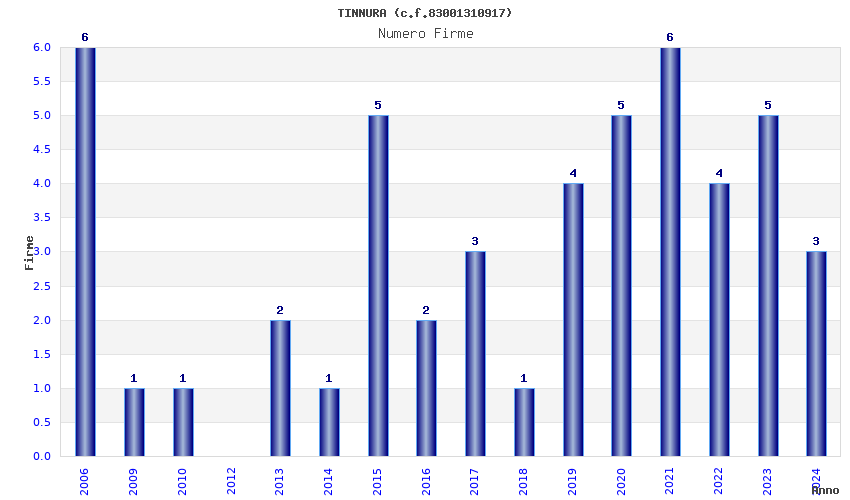 | Anno | Firme | Importi | Media | Naz. | Reg. | Prov. | Comu. |