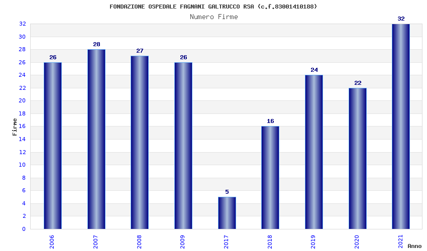 | Anno | Firme | Importi | Media | Naz. | Reg. | Prov. | Comu. |