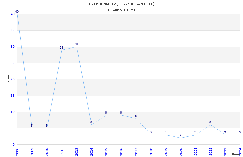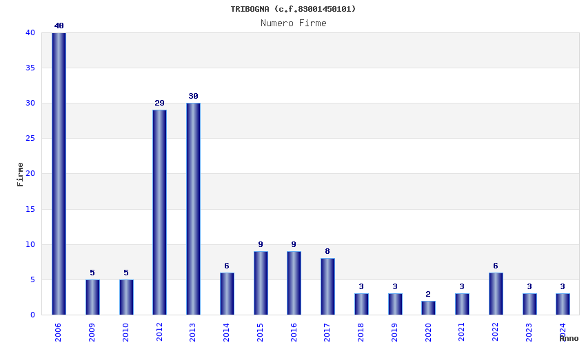 | Anno | Firme | Importi | Media | Naz. | Reg. | Prov. | Comu. |