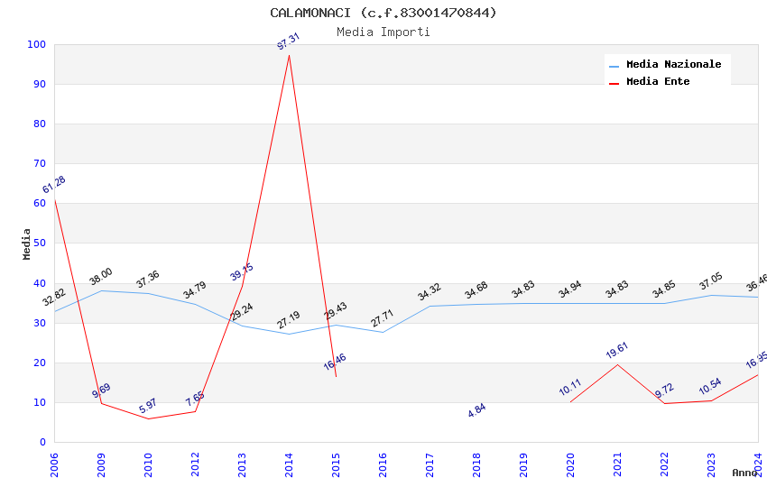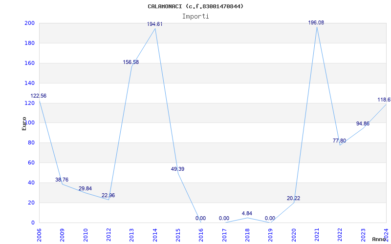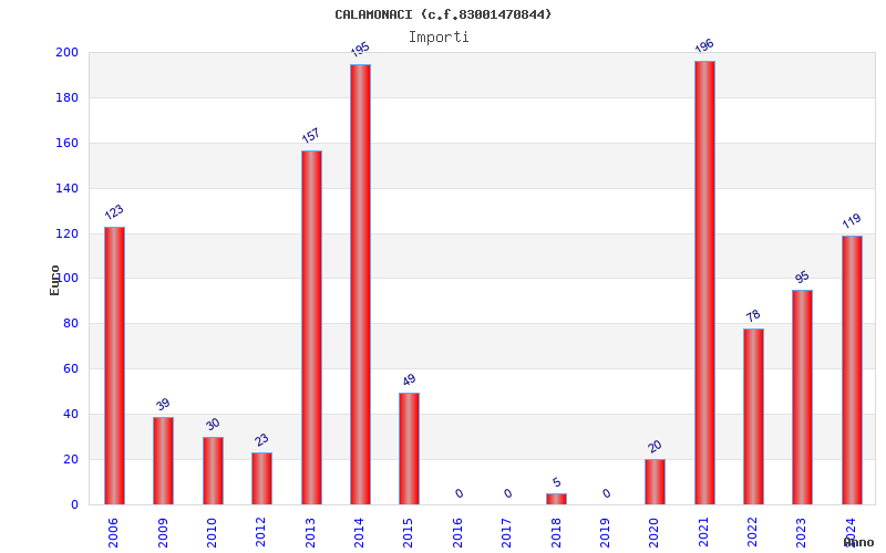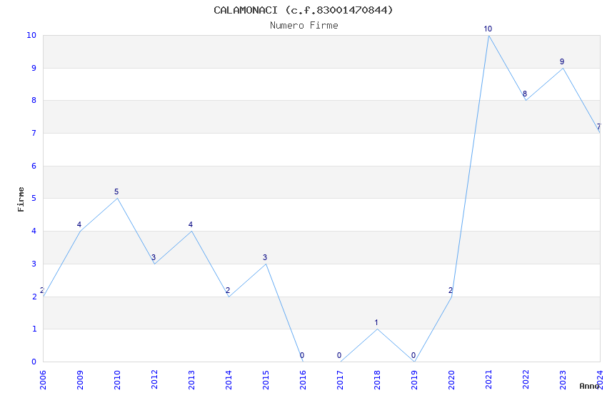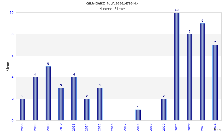 | Anno | Firme | Importi | Media | Naz. | Reg. | Prov. | Comu. |