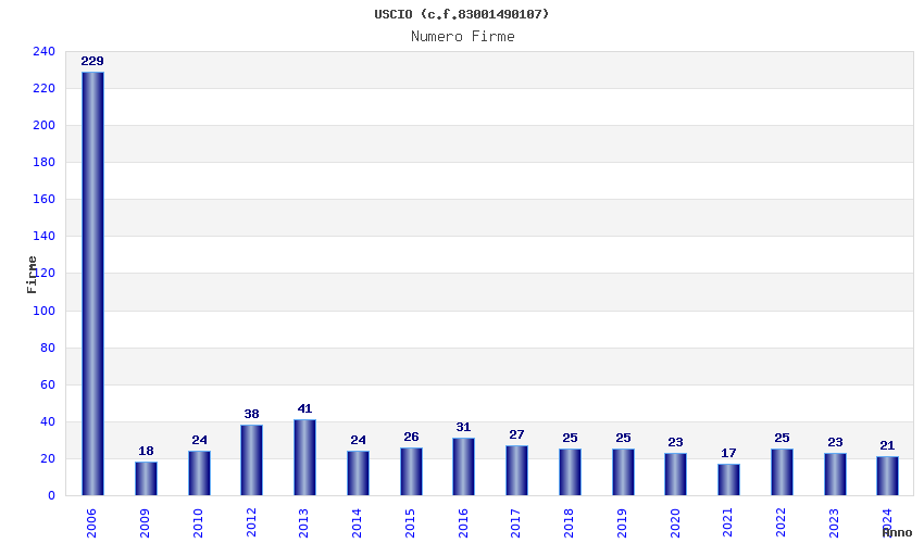 | Anno | Firme | Importi | Media | Naz. | Reg. | Prov. | Comu. |
