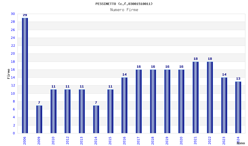 | Anno | Firme | Importi | Media | Naz. | Reg. | Prov. | Comu. |