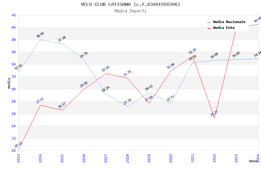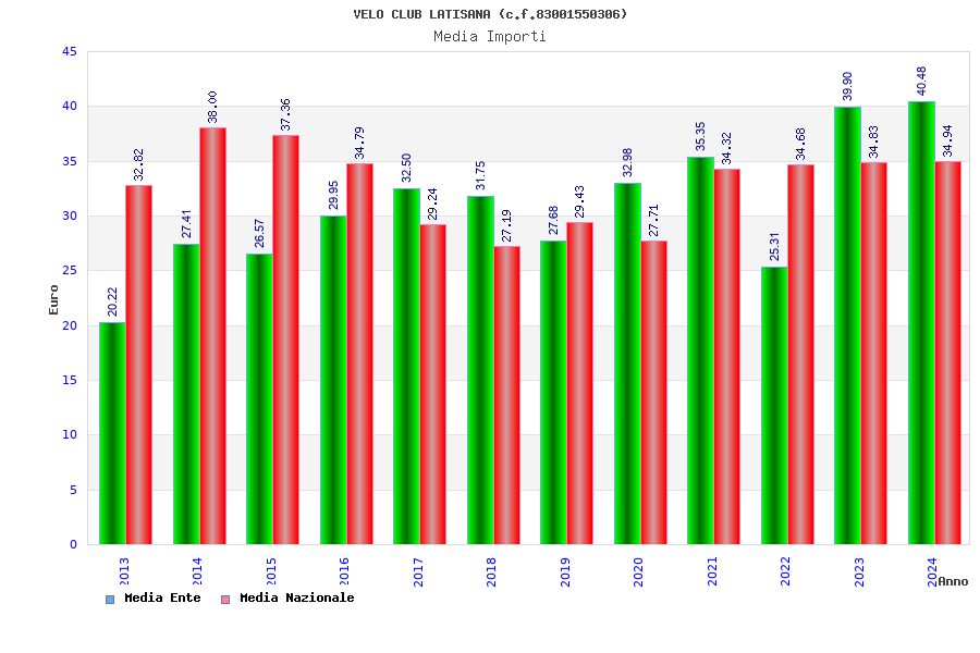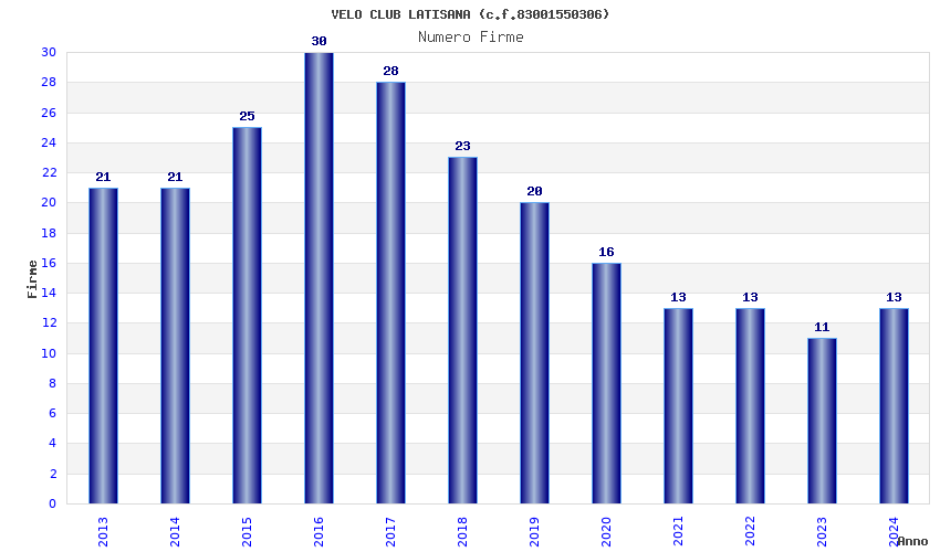 | Anno | Firme | Importi | Media | Naz. | Reg. | Prov. | Comu. |