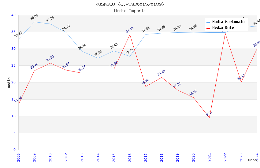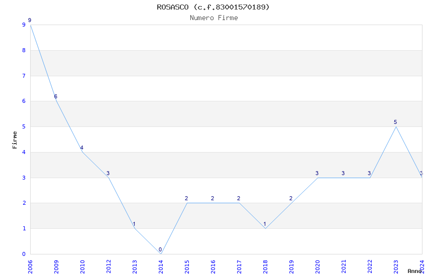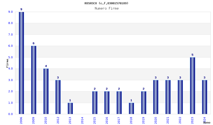 | Anno | Firme | Importi | Media | Naz. | Reg. | Prov. | Comu. |