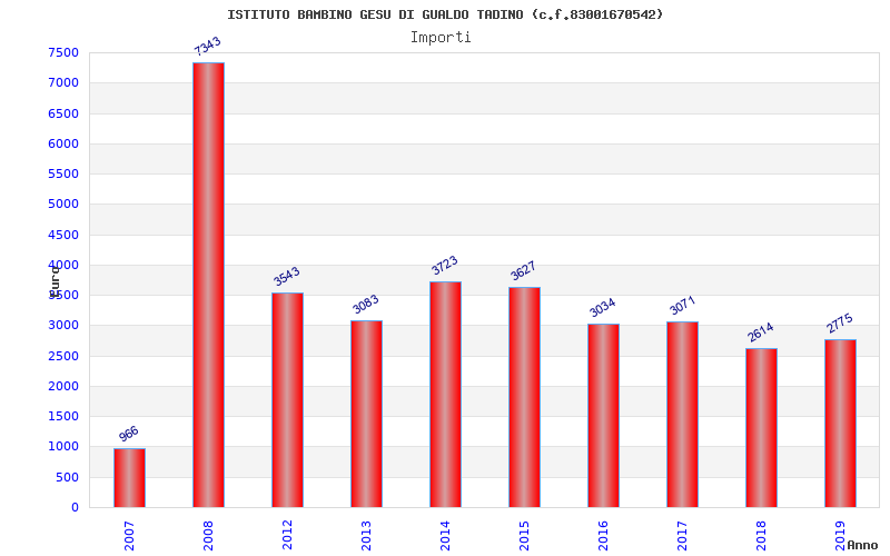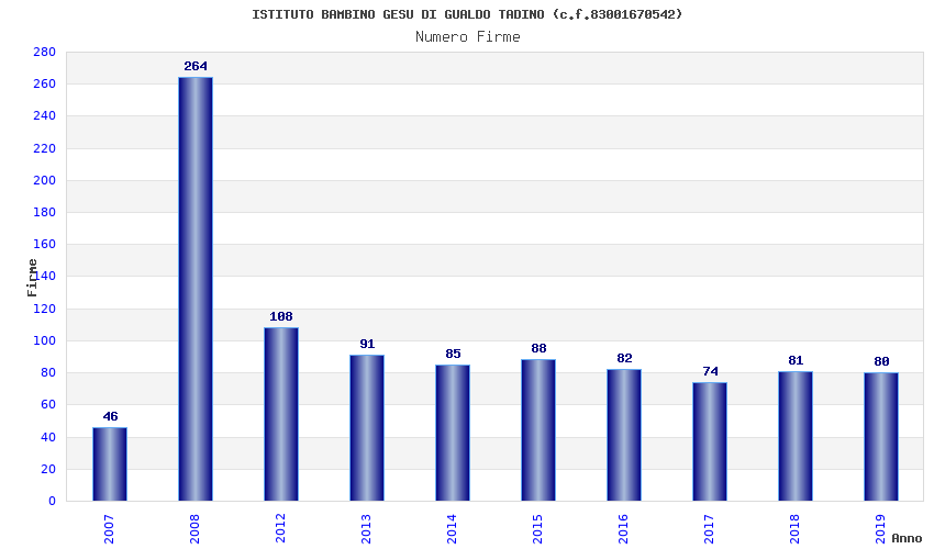 | Anno | Firme | Importi | Media | Naz. | Reg. | Prov. | Comu. |