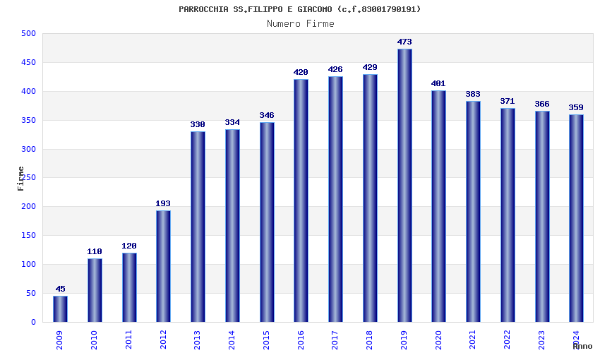 Anno Firme Importi Media Naz. Reg. Prov. Comu.