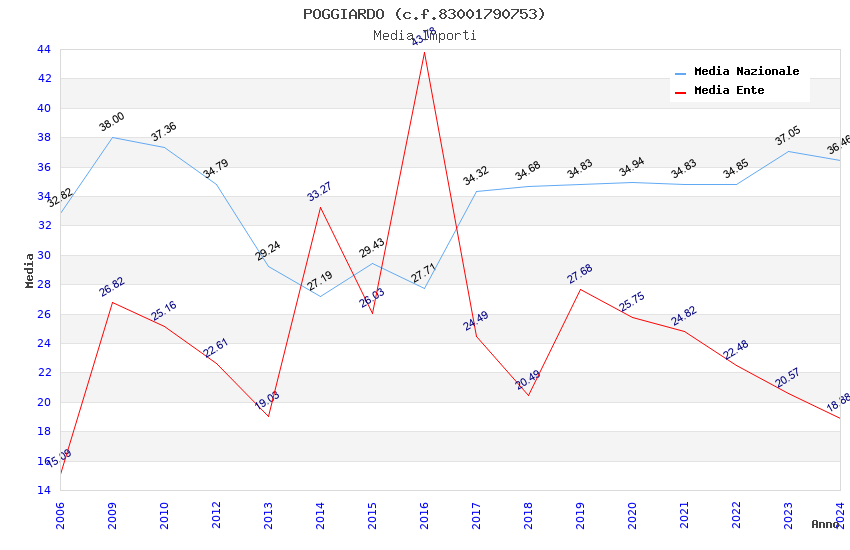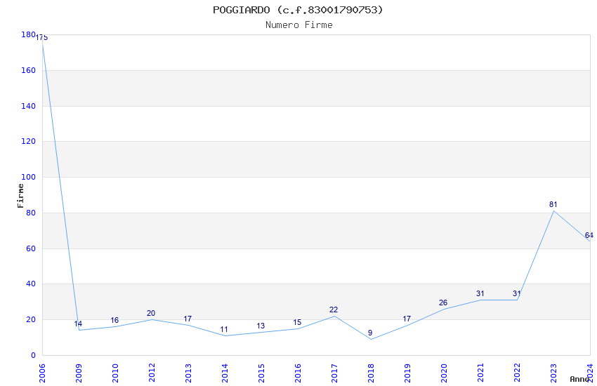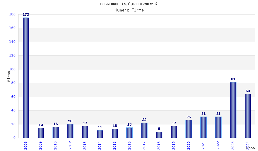 | Anno | Firme | Importi | Media | Naz. | Reg. | Prov. | Comu. |