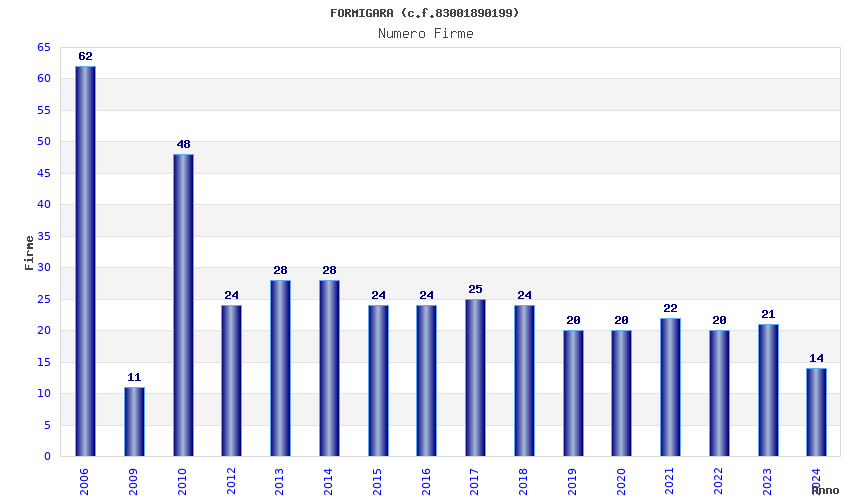 Anno Firme Importi Media Naz. Reg. Prov. Comu.