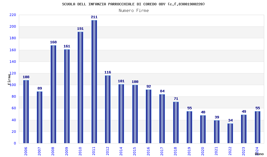 | Anno | Firme | Importi | Media | Naz. | Reg. | Prov. | Comu. |