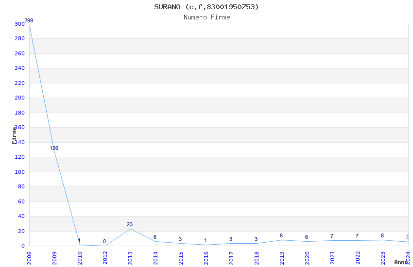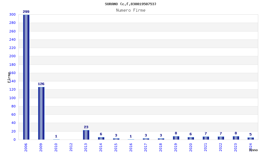 | Anno | Firme | Importi | Media | Naz. | Reg. | Prov. | Comu. |