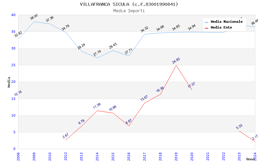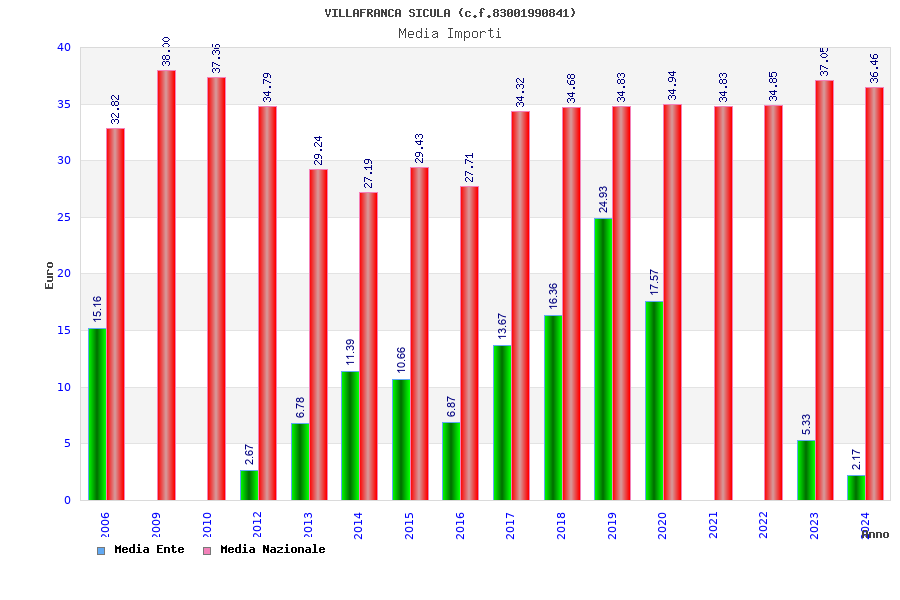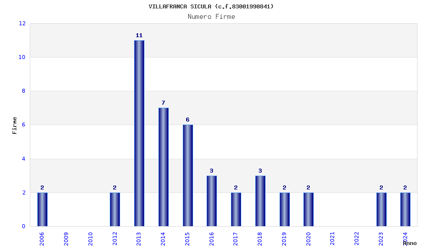 | Anno | Firme | Importi | Media | Naz. | Reg. | Prov. | Comu. |