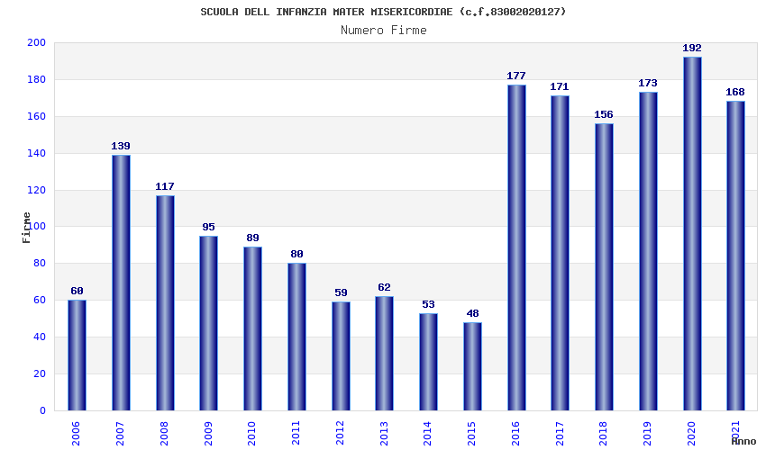 | Anno | Firme | Importi | Media | Naz. | Reg. | Prov. | Comu. |