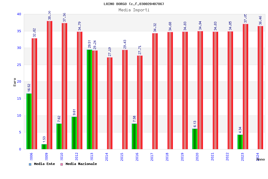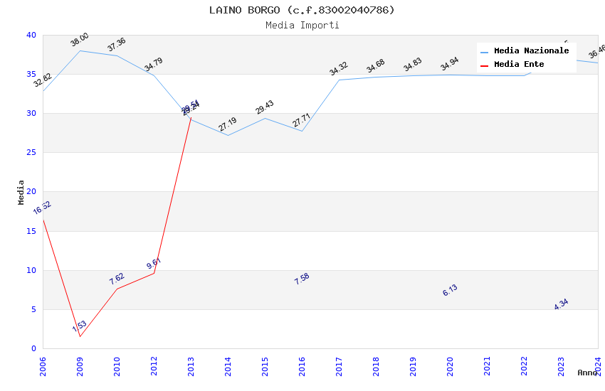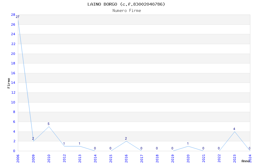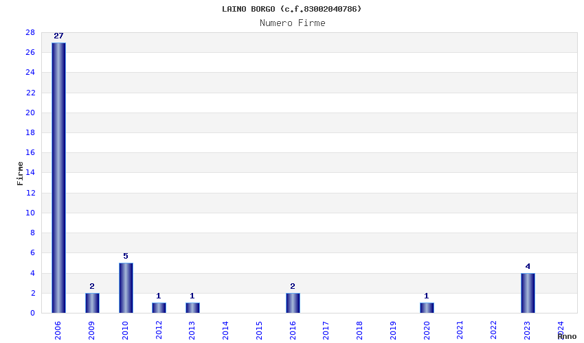 | Anno | Firme | Importi | Media | Naz. | Reg. | Prov. | Comu. |