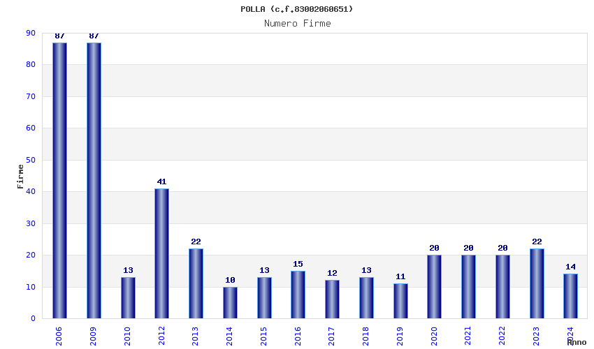 Anno Firme Importi Media Naz. Reg. Prov. Comu.