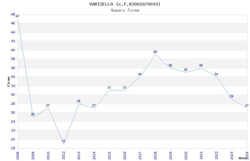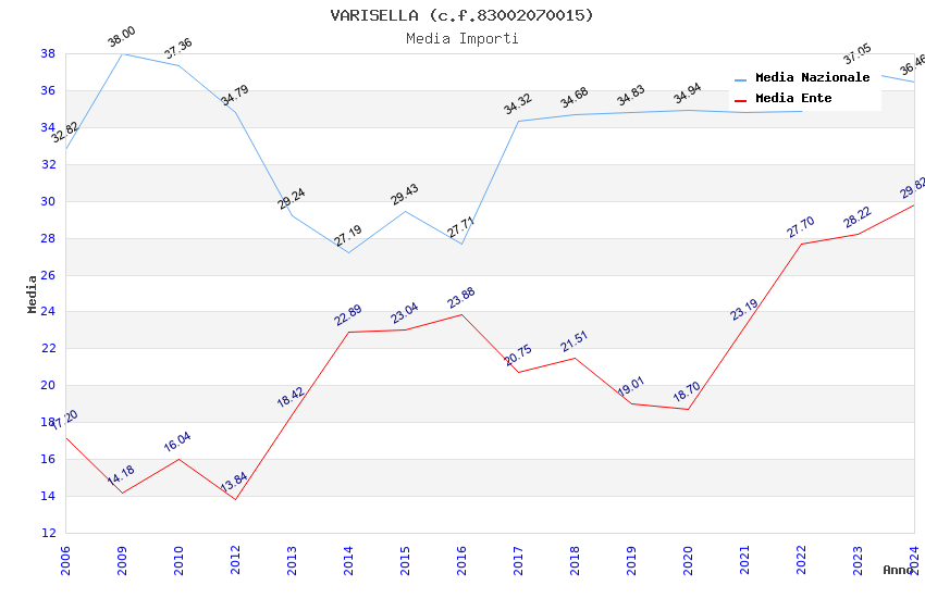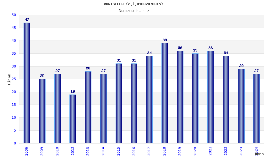 | Anno | Firme | Importi | Media | Naz. | Reg. | Prov. | Comu. |