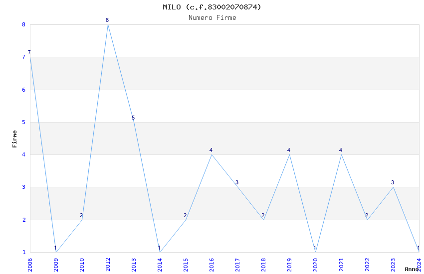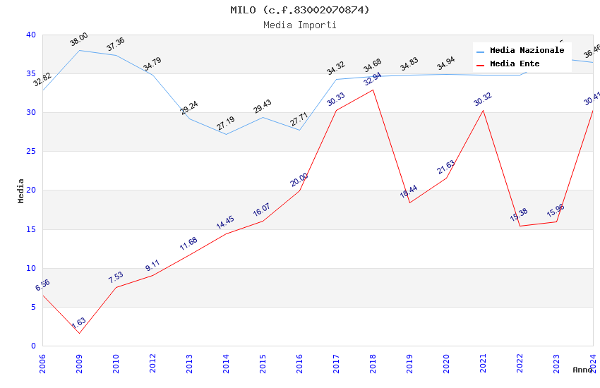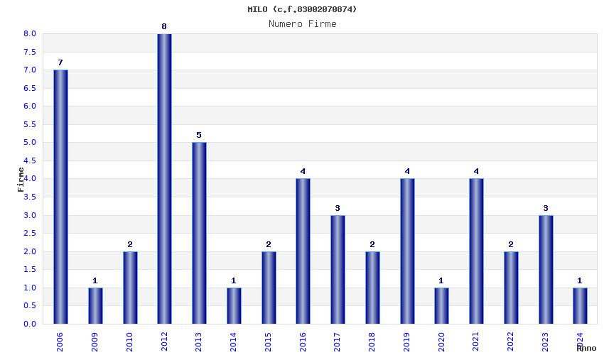| Anno | Firme | Importi | Media | Naz. | Reg. | Prov. | Comu. |