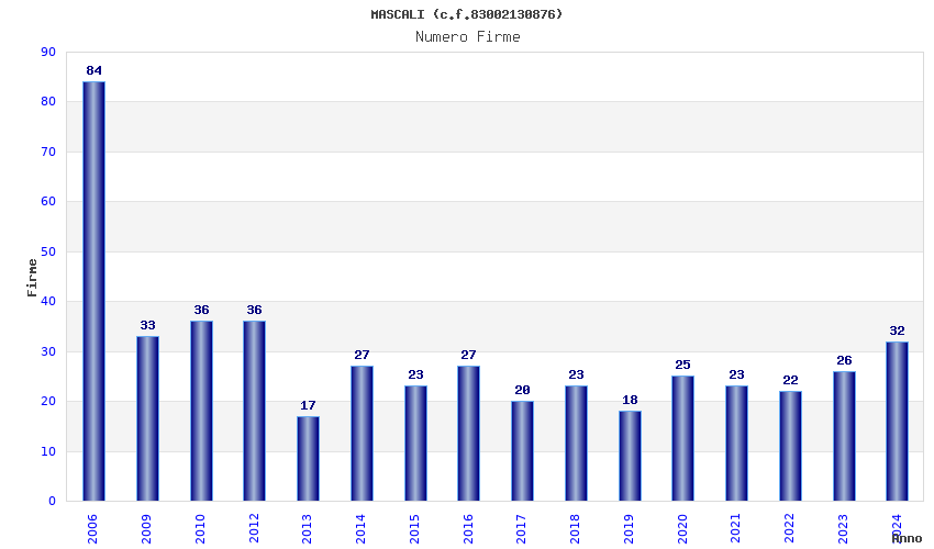 Anno Firme Importi Media Naz. Reg. Prov. Comu.