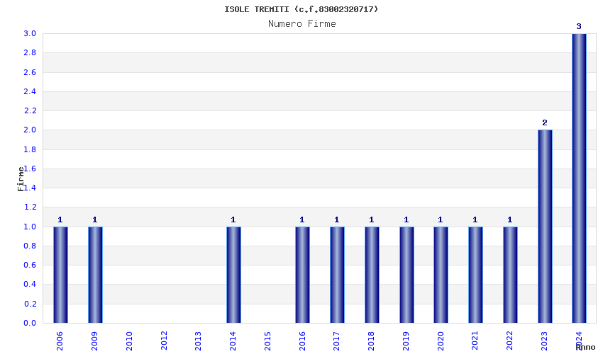 | Anno | Firme | Importi | Media | Naz. | Reg. | Prov. | Comu. |