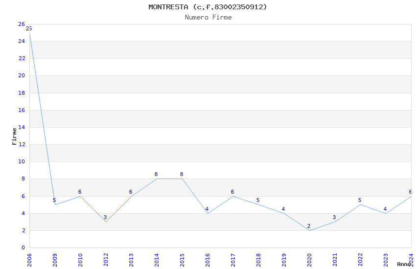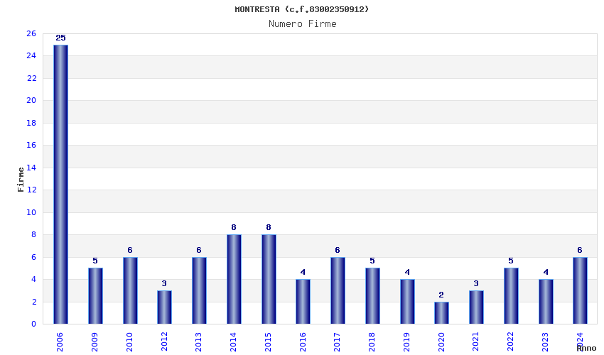 | Anno | Firme | Importi | Media | Naz. | Reg. | Prov. | Comu. |