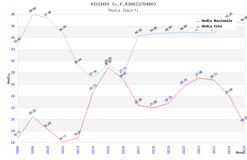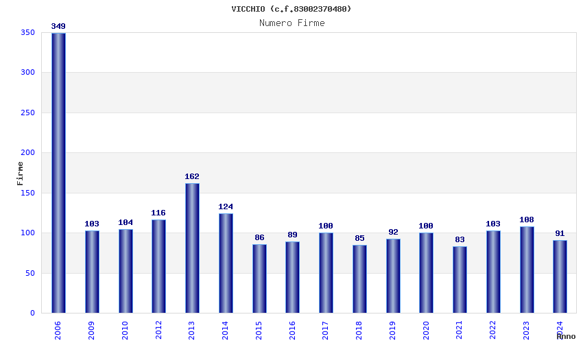| Anno | Firme | Importi | Media | Naz. | Reg. | Prov. | Comu. |