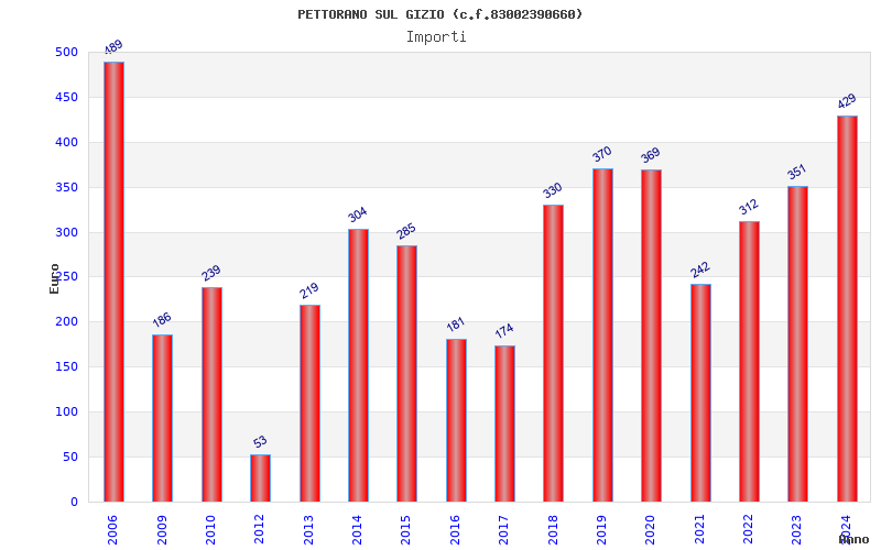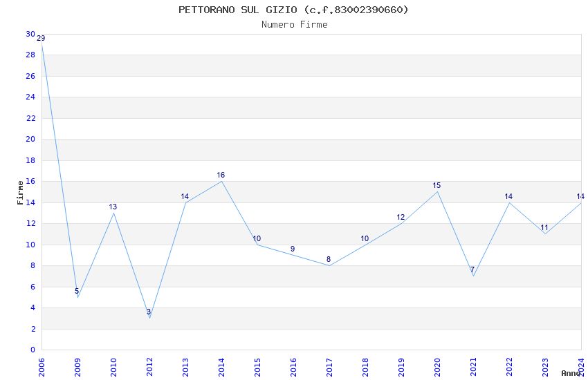 | Anno | Firme | Importi | Media | Naz. | Reg. | Prov. | Comu. |