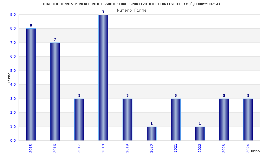 | Anno | Firme | Importi | Media | Naz. | Reg. | Prov. | Comu. |