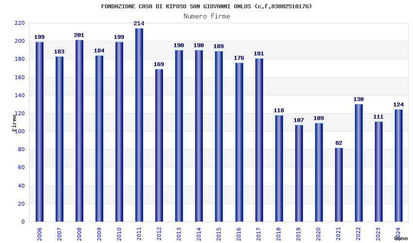 | Anno | Firme | Importi | Media | Naz. | Reg. | Prov. | Comu. |