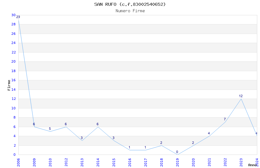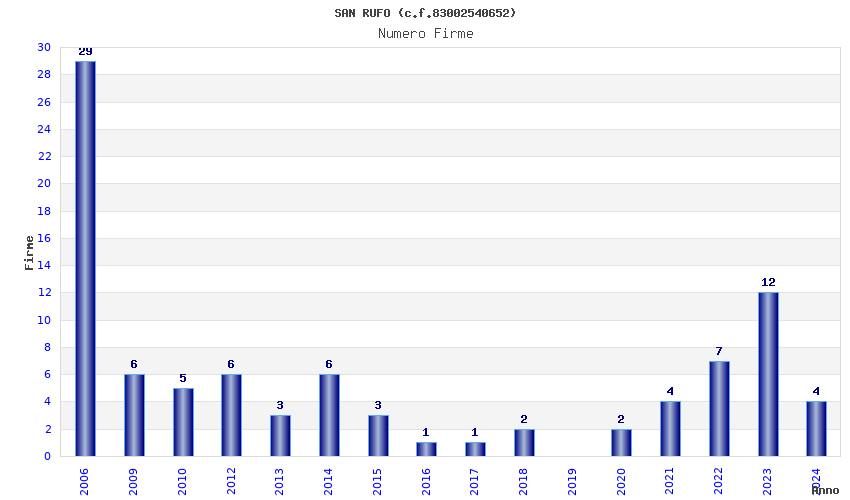 | Anno | Firme | Importi | Media | Naz. | Reg. | Prov. | Comu. |
