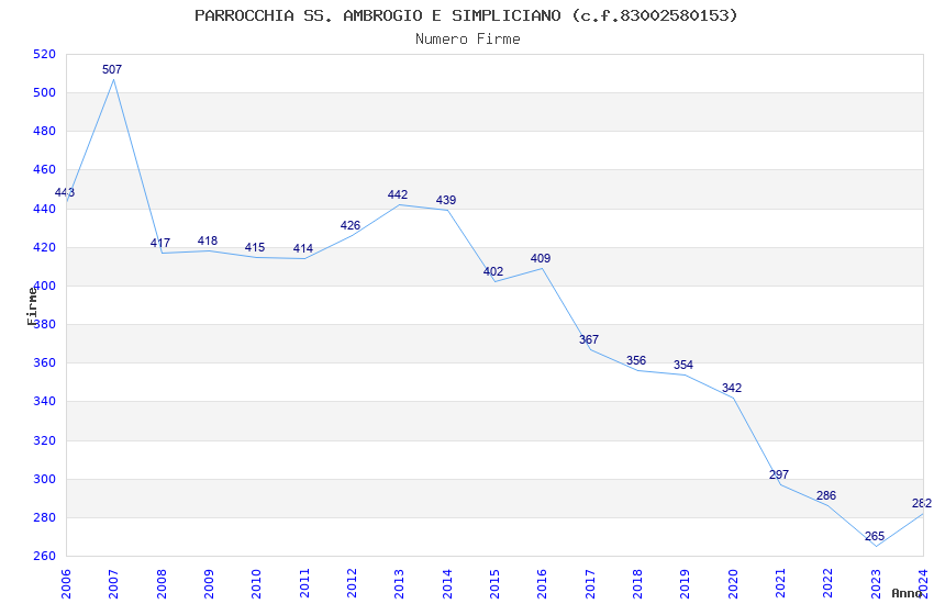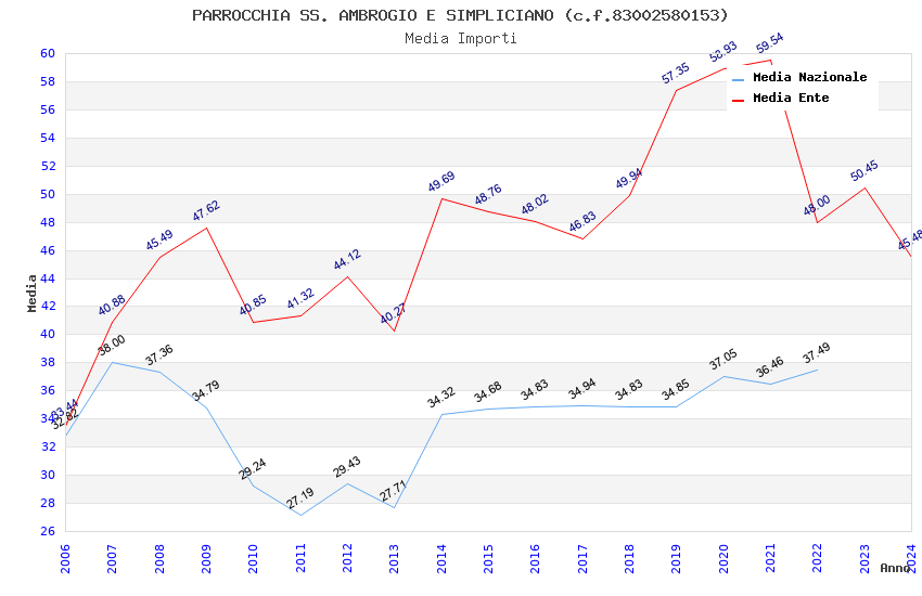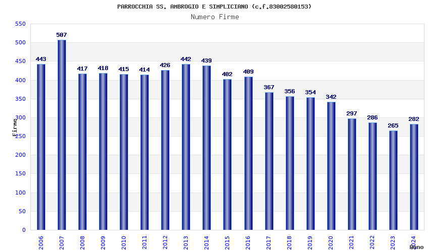 | Anno | Firme | Importi | Media | Naz. | Reg. | Prov. | Comu. |