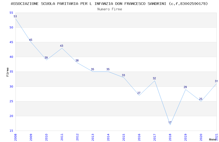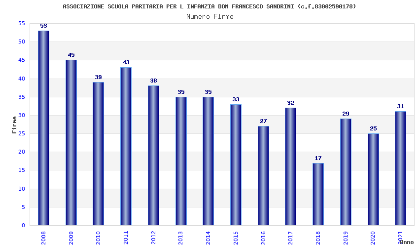 | Anno | Firme | Importi | Media | Naz. | Reg. | Prov. | Comu. |