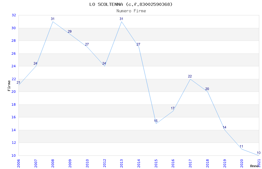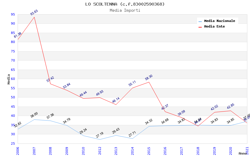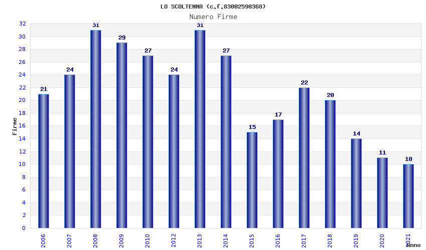 | Anno | Firme | Importi | Media | Naz. | Reg. | Prov. | Comu. |