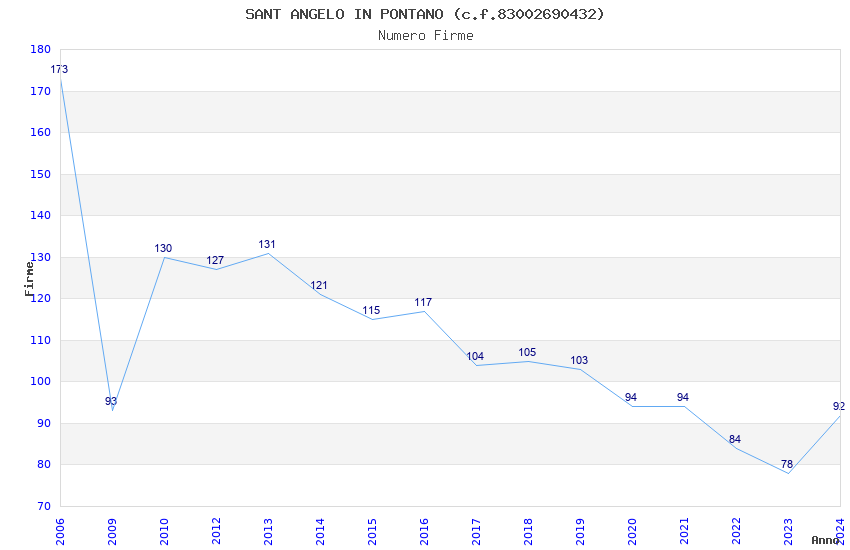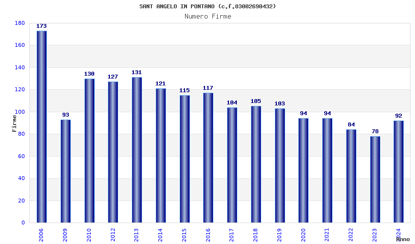 | Anno | Firme | Importi | Media | Naz. | Reg. | Prov. | Comu. |