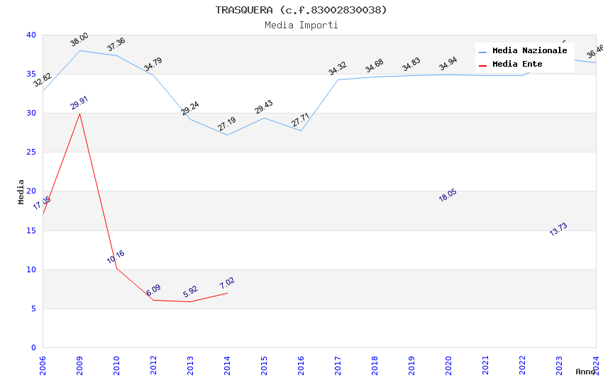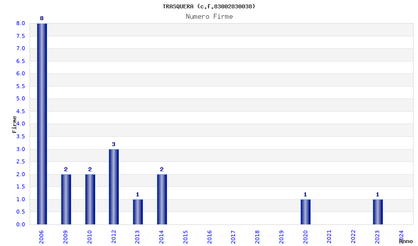 | Anno | Firme | Importi | Media | Naz. | Reg. | Prov. | Comu. |