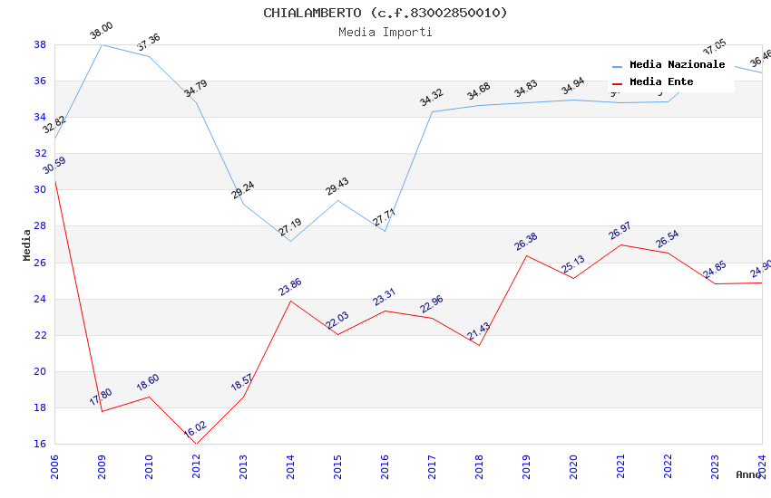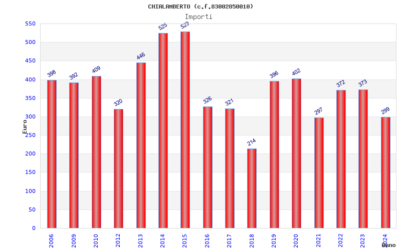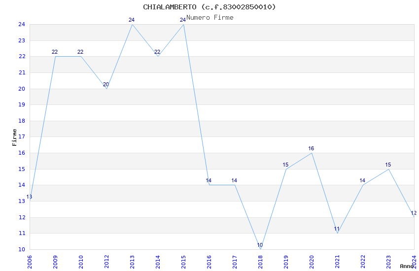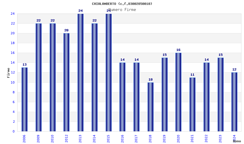 | Anno | Firme | Importi | Media | Naz. | Reg. | Prov. | Comu. |