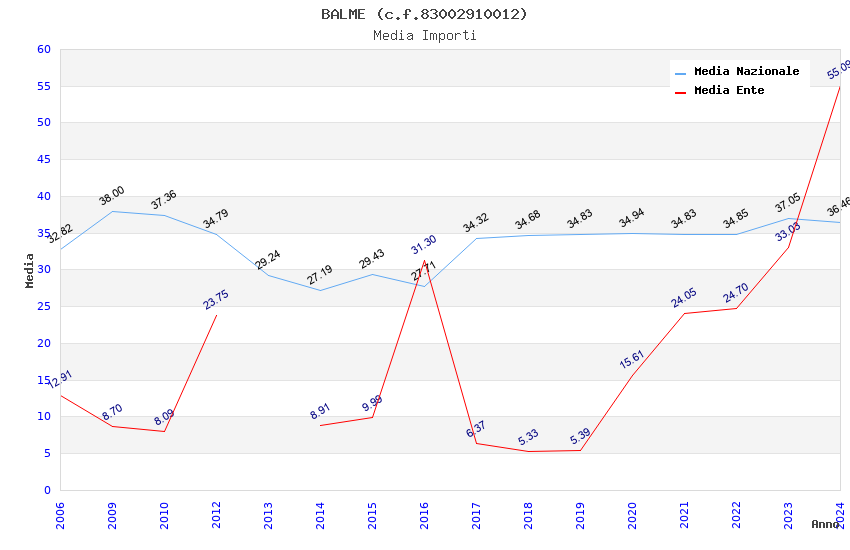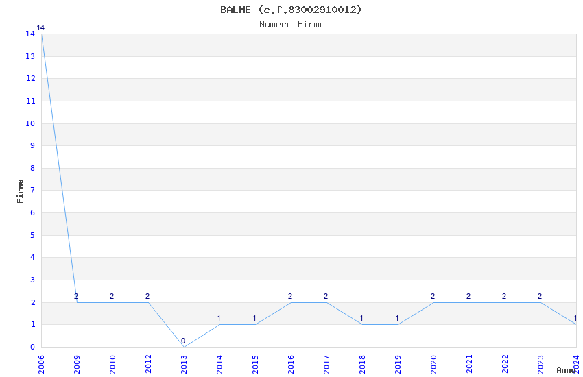 | Anno | Firme | Importi | Media | Naz. | Reg. | Prov. | Comu. |