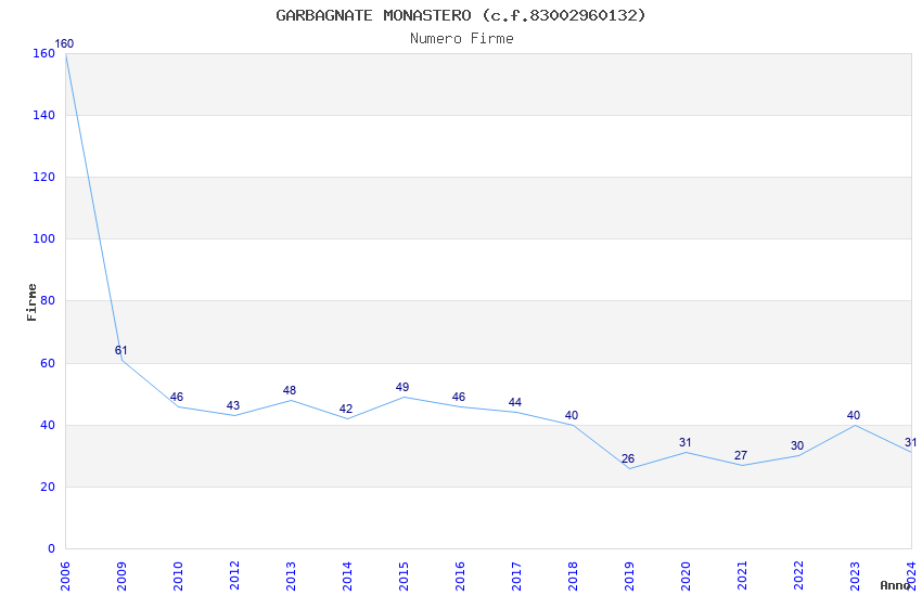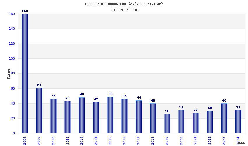 | Anno | Firme | Importi | Media | Naz. | Reg. | Prov. | Comu. |