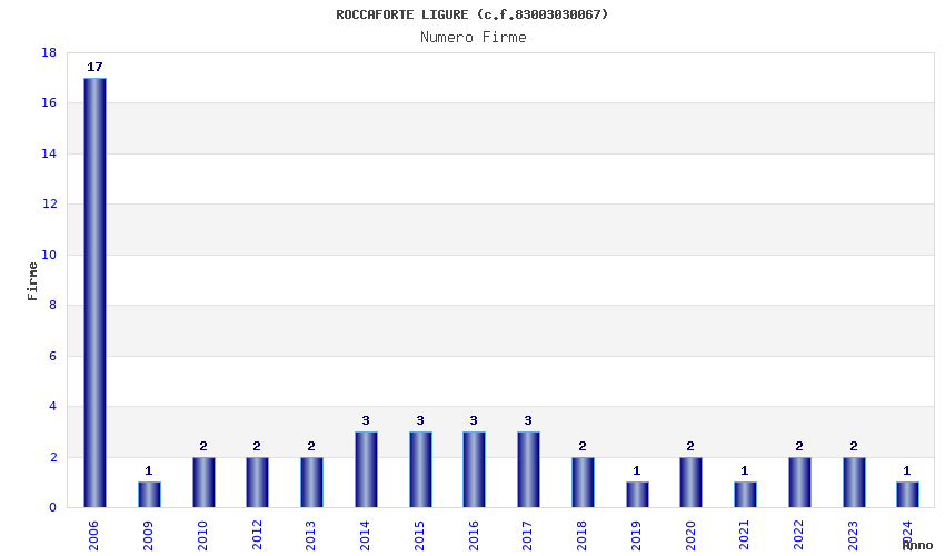 | Anno | Firme | Importi | Media | Naz. | Reg. | Prov. | Comu. |