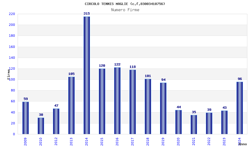 | 2014 | 215 | 5.609,72 | 26,09 | 9.670 | 462 | 70 | 2 |