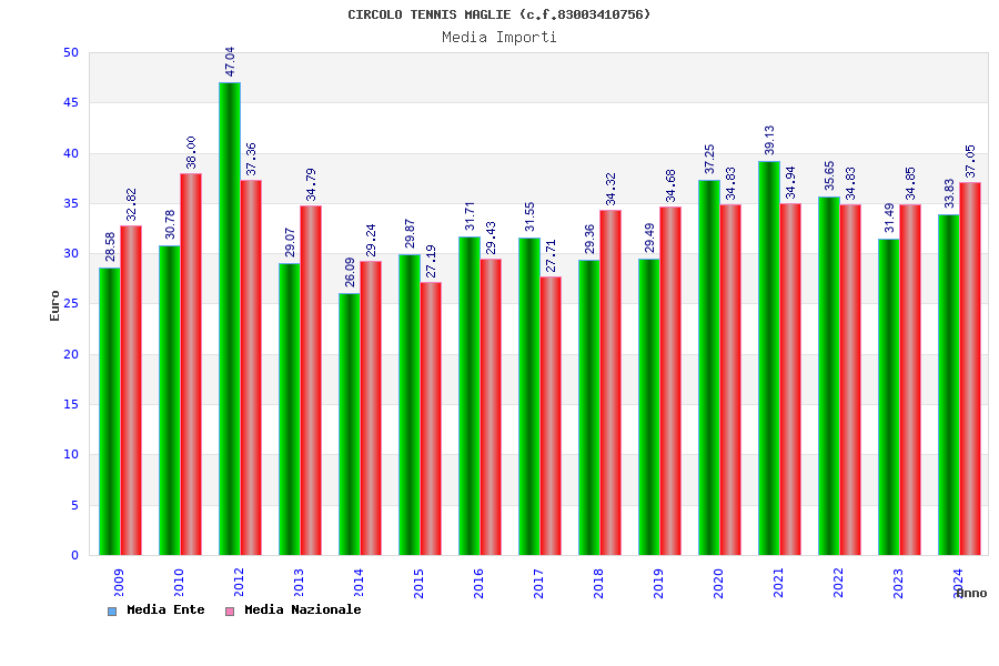| Anno | Firme | Importi | Media | Naz. | Reg. | Prov. | Comu. |