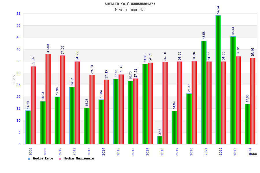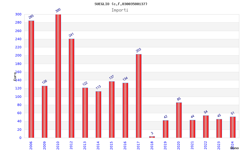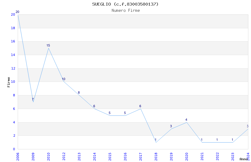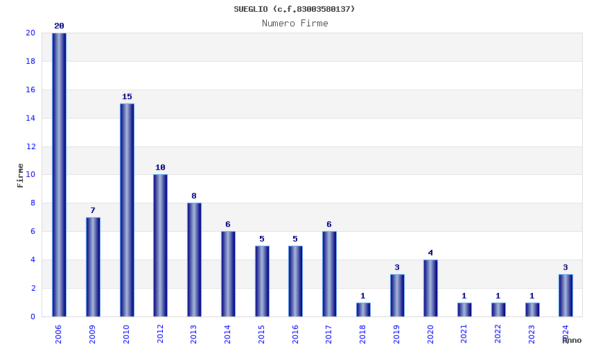 | Anno | Firme | Importi | Media | Naz. | Reg. | Prov. | Comu. |